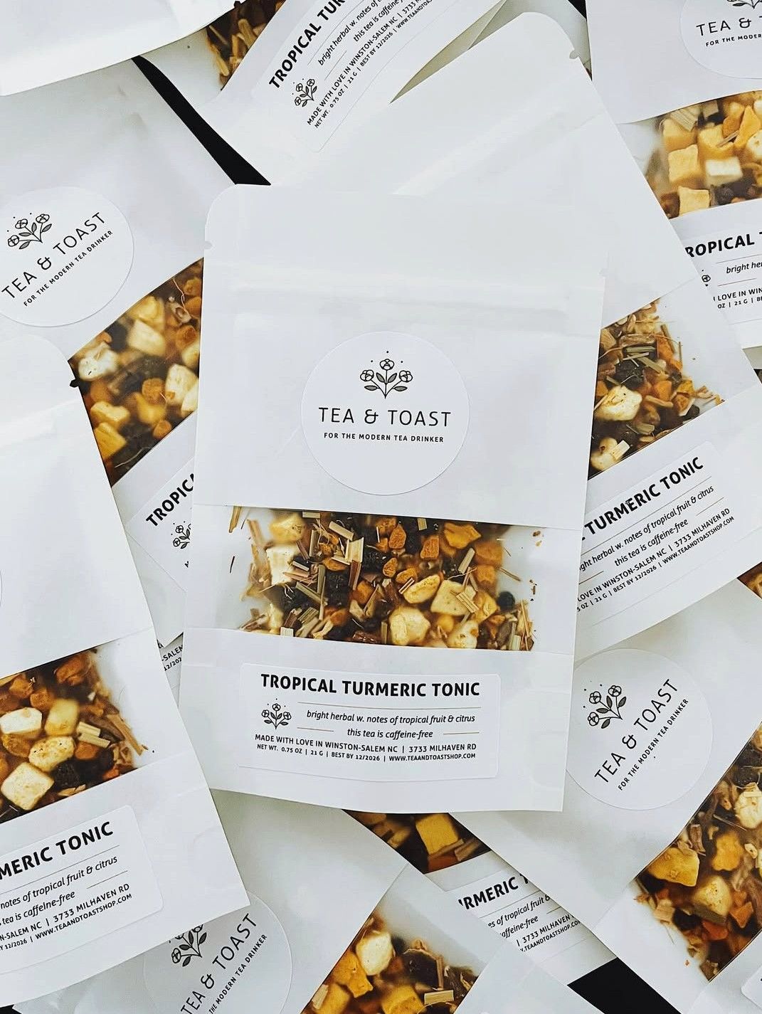 Even the Tea & Toast logo—designed by her sister—spells out the philosophy. It’s a flowering tea plant. In commercial tea production the shrubs are trimmed constantly and rarely allowed to bloom; letting it flower anyway is a quiet statement about growth on your own terms: welcome it, but never at the cost of forgetting what you are.