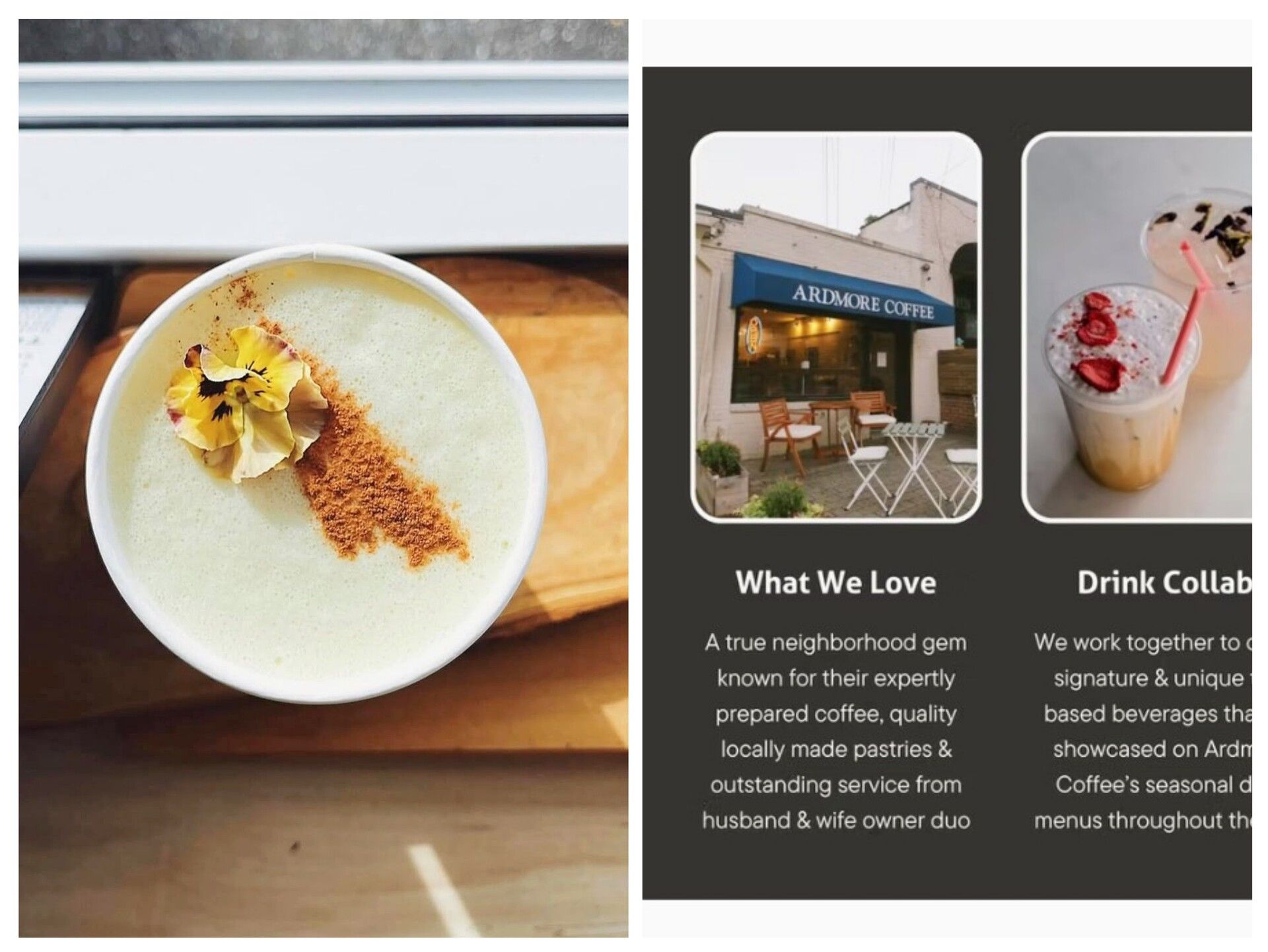Partnerships unfold as organically as the recipes. Wholesale accounts—like Ardmore Coffee, owned by her sister and brother-in-law—become canvases for custom drinks: a gingerbread cookie latte; an apple-pie herbal steamer; later, an iced vanilla London fog with raspberry cold foam. Some were meant to be seasonal; people kept asking, so they stayed.
